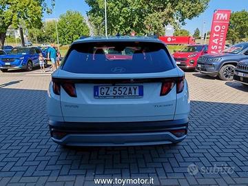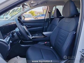 7 Airbag ( anteriori , laterali, a tendina e centrale) - Alzacristalli elettrici anteriori e posteriori con funzione Up & Down Safety - Antifurto con radiocomando a distanza e immobilizer - Attacchi ISOFIX - Barre portatutto longitudinali - Bluetooth con riconoscimento vocale - Bracciolo anteriore con vano portaggetti - Cambio shift-by-wire - Caricatore wireless per smartphone - Cerchi in lega leggera da 18" con pneumatici 235/55 R18 - Climatizzatore automatico a due zone - Cluster Super Vision - Quadro strumenti TFT LCD ad alta definizione da 12.3" - Comandi audio al volante - Fari anteriori Full LED - Frenata automatica d'emergenza con riconoscim. veicoli, pedoni e cicli e funz. junction (F.C.A. 1.5) - Freno di stazionamento elettrico - Hyundai Smart Sense - Kit gonfiaggio pneumatici - Luci interne a LED - Maniglie esterne e specchietti retrovisori in tinta carrozzeria - Paddle al volante - Presa ausiliaria 12V (plancia) - Prese USB anteriori e posteriori - Pulsante di avviamento "Start Button" con Smart Key - Retrovisore interno elettrocromico - Sedile guidatore e passeggero regolabile in altezza e con supporto lombare elettrico - Sedile posteriori abbattibili con modulo 40:20:40 - Sedili rivestiti in tessuto - Sensore crepuscolare - Sensore pioggia - Sensori di parcheggio anteriori - Sensori di parcheggio posteriori e retrocamera - Servizi telematici Bluelink per 10 anni - Sistema di assistenza alla partenza in salita (H.A.C.) - Sistema di controllo della stabilità (E.S.P.) - Sistema di controllo della velocità in discesa (D.B.C.) - Sistema di navigaz. con display touch da 12.3" e connettività Apple Carplay/Android e aggiornamenti - Smart Cruise control - Specchietti retrovisori regolabili, ripiegabili e riscaldabili elettricamente - Trailer Stability Assist (T.S.A.) - Vetri posteriori oscurati - Volante regolabile in
