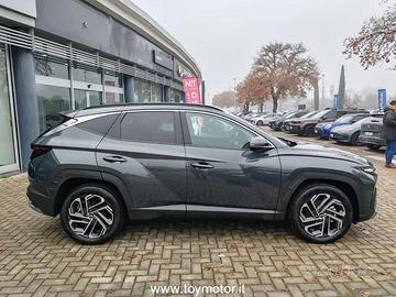 7 Airbag ( anteriori , laterali, a tendina e centrale) - ABS + EBD - Alzacristalli elettrici anteriori e posteriori con funzione Up & Down Safety - Antifurto con radiocomando a distanza e immobilizer - Appoggiatesta posteriori - Attacchi ISOFIX - Barre portatutto longitudinali - Bluetooth con riconoscimento vocale - Bracciolo anteriore con vano portaggetti - Cambio shift-by-wire - Caricatore wireless per smartphone - Cerchi in lega leggera da 19'' con pneum. 235/50 R19 - Climatizzatore automatico a tre-zone - Cluster Super Vision - Quadro strumenti TFT LCD ad alta definizione da 12.3" - Comandi audio al volante - Cruise control - Fari anteriori Full LED Wide Projection - Fari posteriori Full LED - Frenata automatica d'emergenza con riconoscim. veicoli, pedoni e cicli e funz. junction (F.C.A. 1.5) - Freno di stazionamento elettrico - Head-up display - Hyundai Smart Sense - Kit gonfiaggio pneumatici - Krell Premium Sound System - Sistema audio 8 canali con subwoofer e amplificatore - Luci interne a LED - Maniglie esterne e specchietti retrovisori in tinta carrozzeria - Paddle al volante - Portellone posteriore elettrico - Presa ausiliaria 12V (plancia) - Prese USB anteriori e posteriori - Pulsante di avviamento "Start Button" con Smart Key - Remote Seat Folding - Retrovisore interno elettrocromico - Sedile guidatore e passeggero regolabile in altezza e con supporto lombare elettrico - Sedile posteriori abbattibili con modulo 40:20:40 - Sedili anteriori riscaldabili - Sedili rivestiti in misto pelle/tessuto - Sensore crepuscolare - Sensore pioggia - Sensori di parcheggio anteriori - Sensori di parcheggio posteriori e retrocamera - Servizi telematici Bluelink per 10 anni (Lite) - Servosterzo - Sistema di assistenza alla partenza in salita (H.A.C.) - Sistema di controllo della stabilità (E.S.P.) - Sistema di controllo della velocità in discesa (D.B.C.) - Sistema di navigaz. con display touch da 12.3" e connettività Hyu