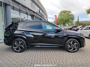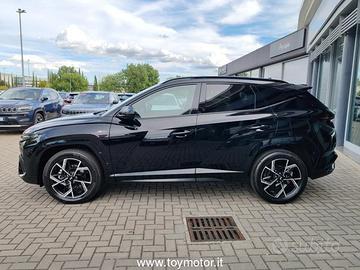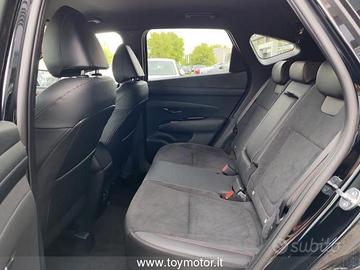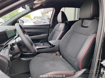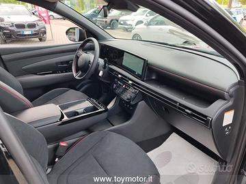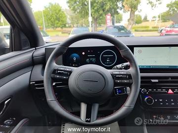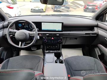 7 Airbag ( anteriori , laterali, a tendina e centrale) - ABS + EBD - Alzacristalli elettrici anteriori e posteriori con funzione Up & Down Safety - Antifurto con radiocomando a distanza e immobilizer - Appoggiatesta posteriori - Attacchi ISOFIX - Barre portatutto longitudinali - Bluetooth con riconoscimento vocale - Bracciolo anteriore con vano portaggetti - Cambio shift-by-wire - Caricatore wireless per smartphone - Cerchi in lega leggera con design dedicato N Line da 19'' con pneum. 235/50 R19 - Climatizzatore automatico a due zone - Cluster Super Vision - Quadro strumenti TFT LCD ad alta definizione da 12.3" - Comandi audio al volante - Cruise control - Design sportivo N-Line - Fari anteriori Full LED Wide Projection - Fari posteriori Full LED - Frenata automatica d'emergenza con riconoscim. veicoli, pedoni e cicli e funz. junction (F.C.A. 1.5) - Freno di stazionamento elettrico - Hyundai Smart Sense - Interni dedicati N Line con cuciture rosse - Kit gonfiaggio pneumatici - Luci interne a LED - Maniglie esterne e specchietti retrovisori in tinta carrozzeria - Paddle al volante - Paraurti anteriore e posteriore con design N - Passaruota in tinta carrozzeria - Pedaliera rivestita in metallo - Portellone posteriore elettrico - Presa ausiliaria 12V (plancia) - Prese USB anteriori e posteriori - Pulsante di avviamento "Start Button" con Smart Key - Retrovisore interno elettrocromico - Sedile guidatore e passeggero regolabile in altezza e con supporto lombare elettrico - Sedile posteriori abbattibili con modulo 40:20:40 - Sedili anteriori regolabili elettricamente - Sedili anteriori riscaldabili - Sedili sportivi N Line rivestiti in misto pelle/tessuto scamosciato - Sensore crepuscolare - Sensore pioggia - Sensori di parcheggio anteriori - Sensori di parcheggio posteriori e retrocamera - Servizi telematici Bluelink per 10 anni (Lite) - Servosterzo - Sistema di assistenza alla partenza in salita (H.A.C.) - Sistema di H