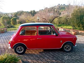 Vendo Innocenti Mini Cooper 1300 anno 1972 iscritta ASI, auto di mia proprietà da più di 30anni, colore rosso con tetto nero e cerchi bicolore grigio nero originali, moquette pavimento grigia, mascherina originale in mio possesso. Carrozzeria in buone condizioni generali, ben conservata, fondi rifatti da poco, cruscotto con strumenti originali. Rivestimento interno rifatto da tre anni, sedili in sky colore nero, cielo grigio chiaro nuovo, pannelli porta neri in ottimo stato. Meccanica revisionata da tre anni, pistoni e fasce nuove, testata, carburatori e freni revisionati, radiatore nuovo. Documenti originali di prima immatricolazione con libretto a pagine, foglio complementare e chiavi originali. Non accetto permute o scambi. Macchina assicurata e revisionata, visionabile a Caltanissetta, primo contatto tramite messaggistica di Subito.it o tramite WhatsApp