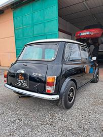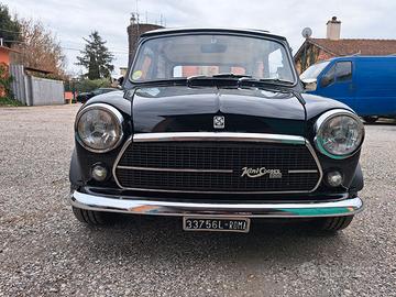 Innocenti Mini Cooper 1300 Export del 1973 nel suo raro colore originale nero/avorio dotata di tettuccio apribile Britax dell'epoca, così come i cerchi in lega della Dunlop. La vettura di carrozzeria si presenta in ottimo stato, lucida e senza tracce di ruggine, gli interni belli e sani. E' stata revisionata tutta la parte meccanica presso officina specializzata in mini d'epoca, a partire dal motore per intero, cambio e differenziale. Sostituiti servofreno, bobina e puntine, volano alleggerito in acciaio e gruppo frizione nuova, rettifica cilindri con pistoni nuovi, paracoppa dell'epoca, kit sospensioni hi-lo, gomme nuove Yokohama 008, collettori LCB e scarico completo RC40 centrale in acciaio inox.