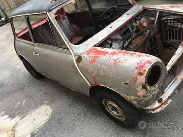 Vendo scocca sulle 4 ruote come si vede dalle foto innocenti mini Cooper 1300 pre-export primissima serie del 1972 con targhe e documenti originali di prima immatricolazione da passaggio la carcassa e sanissima purtroppo c’è da sostituire il tetto il suo colore di origine e rossa con il tetto nero prezzo 3500 euro per info 3349739253 Daniele