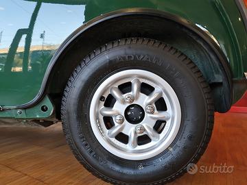 Per ulteriori fotografie: https://www.tomini.eu/project/innocenti1300verdebs/ Caratteristiche Motore anteriore trasversale 4 cilindri in linea 8 valvole. Cilindrata cm3 1275, potenza max/regime circa 63 CV a 5700 giri/min, coppia max/regime circa 95 Nm a 3000 giri/min. Motore brillante e reattivo che scarica la propria potenza tramite una trazione anteriore accompagnata da un rigoroso cambio meccanico a 4 rapporti. Freni anteriori a disco e freni posteriori a tamburo. Accelerazione vivace in rapporto alla cilindrata e velocità massima nell’ordine dei 145 km/h. Condizioni L’Innocenti Mini Cooper 1300 pre Export è una delle versioni più interessanti e apprezzate della produzione Mini realizzata a Lambrate su licenza British Leyland. Si distingue per il motore 1275 cc, per il carattere brillante della meccanica e per una costruzione che ancora oggi viene apprezzata dagli intenditori del marchio per personalità, compattezza e piacere di guida. Nello specifico parliamo di un esemplare in ottimo stato generale, ben conservato e coerente con lo spirito originale della vettura. Gli interni si presentano in bello stato, con sedili ben tenuti, pannelli in ordine e abitacolo complessivamente curato. La strumentazione si inserisce perfettamente nel contesto classico della vettura, mantenendo quel gusto semplice, sportivo e immediato che ha reso queste Mini così amate. Tutta la plancia conserva il fascino essenziale delle versioni dell’epoca, con un’impostazione orientata alla funzionalità e al piacere di guida. Esternamente la carrozzeria verde valorizza in modo molto elegante le forme compatte e inconfondibili della Mini, mettendo in risalto il disegno classico della scocca e la forte personalità del modello. L’insieme risulta armonioso, fresco e molto piacevole alla vista, con una presenza che riesce a unire sportività e gusto d’epoca. Dettagli, proporzioni e impostazione generale rendono questa vettura immediatamente riconoscibile anche agli occhi dei meno esperti. Mecc