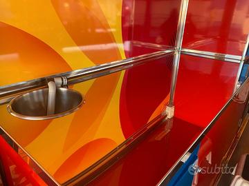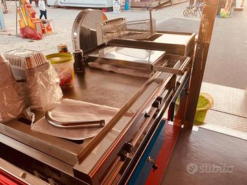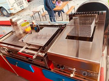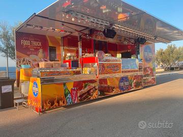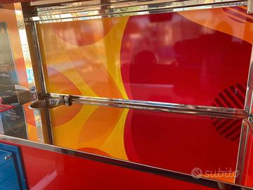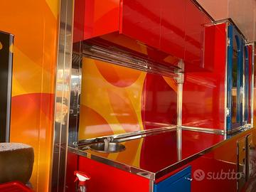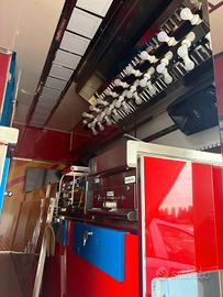 Di base Iveco Daily 35/12 anno 12/07 tagliandato , gommato e revisionato con relative fatture per un importo di €15000 in officina Iveco dotata di aria condizionata, servosterzo, abs, stereo cd di serie, 3 posti in cabina, full led, guidabile con patente B, dotato di doppie chiavi. l’allestimento è composto su cassa resti con movimentazione idraulica con piedi stabilizzatori all’interno così composto: banco refrigerato positivo idraulico, insegna luminosa led copriruota, pannello copri cabina, circa 100 lampadine a led, 2 casse audio RCF, televisore lcd, varie insegne luminose, il banco dispone di banco cassa con tiretti, alloggio per piastra da 90 di Francia con calotta e friggitrice da banco 8 L Modular, entrambi gpl, porta condizioni inox illuminato antistante la piastra, 2 tiretti sottostante porta attrezzi, nella parte superiore del banco anteriore troviamo porta oggetti chiuso con antine illuminato. Le attrezzature funzionano con regolare impianto gpl alimentato da 2 bombole collocate nell’apposito vano esterno, pavimentazione in multi strato marino resinato, nella parte posteriore troviamo un vano chiuso attualmente in uso come ripostiglio predisposto per wc con illuminazione e presa di corrente accessibile da una porta esterna, successivamente abbiamo doppia frigo vetrina bibite con ripiani inox illuminata, banco inox con lavandino e sempre nella parte alta mobili dispensa, nella parte sottostante troviamo carico e scarico per lavandino, una cella positiva, una cella negativa. Ampia dispensa sull’imperiale, vari faretti a led, a completare l‘Autonegozio una piastra estraibile da 90 di Francia su banco estraibile inox circa 2.20m porta condimenti inox luminoso, insegna led di circa 2.20m a congiungimento del banco, pedana estraibile ripiano porta pane di circa 2.20m con prolunga di altrettanti metri collocato vicino al porta pane abbiamo quadro elettrico e dall’esterno si può accedere al vano e al generatore Honda super silenziato con avviamento elettrico. Pe