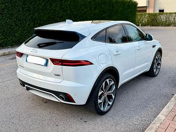 Jaguar E-Pace 2.0d i4 180cv R.Dynamic 2019 81.000km tagliandati con cambio automatico con palette al volante f1, interno in pelle totale, volante in pelle multifunzioni, sedili elettrici, navigatore satellitare 3d, vetri posteriori oscurati, cruise control, cerchi in lega per 21”, fari led, doppie chiavi, tetto panoramico, keyless, frenata assistita, telecamera posteriore, sensori di parcheggio anteriori e posteriori, start&stop, doppie chiavi.