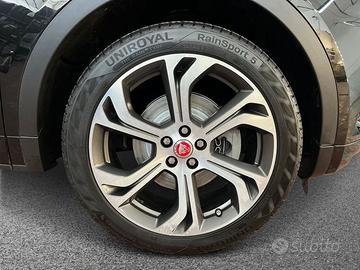 lunghezza) - Airbag a Tendina per l'intera Lunghezza del Finestrino Laterale - Airbag laterali - Alette parasole con luce di cortesia - All Surface Progress Control (ASPC) (solo versioni cambio automatico) - Allarme perimetrale - Avviso cinture di sicurezza - Cerchi in lega da 18" a 5 razze "Style 5408" - Chiusura Automatica delle portiere configurabile - Climatizzatore a 2 Zone - Computer di bordo - Connettività Bluetooth - Console centrale con bracciolo - Copertura del vano di carico - Cornici dei finestrini laterali nere satinate - Cruise Control - Controllo della velocità di crociera - Differenziale elettronico attivo con Torque Vectoring by braking (solo versioni AWD) - Dispositivo di Ausilio alla Frenata di Emergenza (EBA) - Doppi portabicchieri anteriori con copertura - Dynamic Stability Control (DSC) - Eco HMI con Analisi dei Parametri di Guida - Efficient Drive Line (solo versioni AWD) - Fari Automatici - Fari Fendinebbia Anteriori - Fari con caratteristiche luci a LED - Finestrini elettrici con chiusuraapertura one-touch - Frenata di emergenza autonoma - Freno di stazionamento elettrico (EPB) - Gloss Black Grille Noble Chrome surround - Hill launch assist - Illuminazione console superiore - Illuminazione d'ambiente: faretto anteriore, posteriore e bagagliaio, luci di cortesia anteriori - In Control Touch Pro - Sistema di navigazione satellitare SSD - InControl Apps - InControl Remote - Lane Keep Assist - Logo e Scritta "JAGUAR" - Luce vano di carico - Luci interne - Lunotto