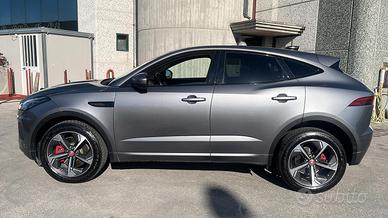 Vendesi Jaguar EPACE anno 2021, Keyless entry, pinze freni rosse, ricarica dispositivi wireless, specchietto retrovisore interno clearsight, tetto e spoiler a contrasto black, tetto panoramico fisso con tendina elettrica, vernice metalizzata eiger grey, vetri oscurati, o jack.-