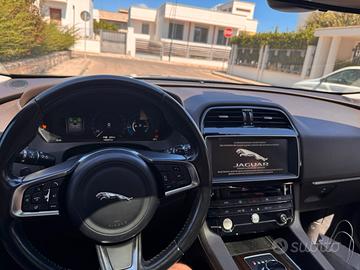 Vendo Jaguar F-Pace 2.0 d. Prestige 180 CV anno 2017 in ottime condizioni generali sempre tagliandata regolarmente, auto dotata di climatizzatore automatico, navigatore grande touchscreen, selleria in pelle totale, cambio automatico e sequenziale con palette F1 al volante, cerchi in lega da 19 pollici, gommata bene, fari bixenon, vetri privacy, sensori di parcheggio anteriori e posteriori, retro camera, specchietti retrovisori ripiegabili elettricamente, colore blu metallizzato, tetto panoramico grande.