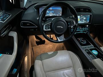 Sedili in pelle beige, Tetto panoramico con tettuccio apribile + tendina, All Surface Progress Control (ASPC), Badge 20d AWD, Bracciolo posteriore con portabicchieri, Cambio automatico elettronico a 8 rapporti ZF con Jaguar Sequential Shift, Cerchi in lega da 18" a 15 razze "Style 1022", Climatizzatore a due zone, Connessioni USB, Aux e iPod®, Bluetooth e Wi-Fi, Controllo della stabilità del rimorchio, Controllo della velocità di crociera e limitatore di velocità, Doppi portabicchieri anteriori con copertura, Fendinebbia anteriori, Filtro anti particolato (cDPF), Frenata di emergenza autonoma, Freni Performance da 325 mm, Freno di stazionamento elettronico con disattivazione automatica alla partenza, Griglia frontale nero lucido con cornice cromata, Illuminazione interna d'ambiente estesa (soffusa), Impianto Audio Jaguar Sound System (80W, 6 altop., amplif. 4 can.), InControl Protect, Inserti in Nero Lucido - Gloss Black, Jaguar Drive Control (Modalità Eco, Dynamic, Normale, Pioggia/Ghiaccio/Neve), Lampeggiatori di emergenza in caso di frenata improvvisa, Avviso di cambio corsia, Lavafari elettrici, Levette di selezione marce nere, Padiglione in colore Light Oyster, Partenza Assistita in Salita (Hill Start Assist), Pinze dei freni unpainted, Prese d'aria laterali Chrome, Prese elettriche (5) e 2 prese USB post. aggiuntive, Quadro strumenti con display centrale TFT da 5", Sedile posteriore frazionabile - 40:20:40, Sensori di parcheggio anteriori, laterali e posteriori, Servosterzo elettrico (EPAS) ad assistenza variabile, Sistema di monitoraggio pressione pneumatici (TPMS), Soglie d'ingresso in metallo con scritta Jaguar, Fari anteriori HID bi-funzione autoliv. con luci diurne a LED e MOLTI ALTRI ACCESSORI DI SERIE.