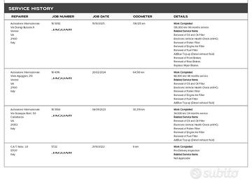 Jaguar F-Pace 2.0d i4 MHEV R-Dynamic SE AWD 204CV Auto ANNO 2022 | 145.000 CHILOMETRI CERTIFICATI AUTO ITALIANA | DISPONIBILE PRONTA CONSEGNA DISPONE DEI SEGUENTI ACCESSORI: SEDILI IN PELLE WINDSOR TRAFORATA ROSSO/BORDEAUX; SEDILI REGOLABILI ELETTRICAMENTE CON FUNZIONE MEMORIA SEDILI RISCALDABILI GRUPPI OTTICI ANTERIORI CON TECNOLOGIA LED JAGUAR; LOOK ESTERNO IN NERO LUCIDO; MERIDIAN PREMIUM SOUND SYSTEM 380W; CLIMATIZZATORE DIGITALE A DUE ZONE; PACK LUCI SOFFUSE ABITACOLO CON DIECI TONALITA' DI COLORE INTERCAMBIABILI E TRE ZONE LUMINOSE; TELECAMERA POSTERIORE GRANDANGOLARE VOLANTE SPORTIVO IN PELLE MULTIFUNZIONE A TRE RAZZE BI-COLORE E PADDLE SHIFT; SELETTORE DELLA MODALITA' DI GUIDA; VEHICLE HEALTH; APPLE CAR PLAY E ANDROID AUTO; PIANTONE DELLO STERZO REGOLABILE ELETTRICAMENTE; MODALITA' DINAMICA; VEICLE HEALTH (MONITORAGGIO STATO VEICOLO); INFORMAZIONI FONDO STRADALE; ALEXA; AVVIO A TRAZIONE RIDOTTA; MODALITA' VALET; LIMITATORE VELOCITA' ADATTIVO; ECO COACH; ALLARME AVVISO DI COLLISIONE FRONTALE; FRENATA D'EMERGENZA; SISTEMA MANTENIMENTO CORSIA; ALLARME STANCHEZZA GUIDATORE; MONITORAGGIO ANGOLO CIECO; ECC.. ECC.. ECC.. - Disponibile qualsiasi prova o visione anche con il vostro meccanico di fiducia. - Possibilità di Finanziamento | Valutiamo Permute. - Per qualsiasi informazione non esitate a contattarci, GRAZIE ! - Grazie ad un'esperienza acquisita negli anni offriamo e soprattutto garantiamo servizi e vetture di altissima qualità ! CHIEDI DI NOI ! - SEGUICI sui Social Media: Car Lux Srl e visita il nostro sito www.carluxsrl.it per scoprire di più su di noi -NB. La società venditrice non assume alcuna responsabilità relativamente ai dati della vettura riportata nel sito, avuto particolare riguardo agli optional che debbono considerarsi puramente indicativi essendo il sito in continuo aggiornamento. invitiamo i nostri clienti a prendere contatto telefonico per la verifica delle caratteristiche della vettura.