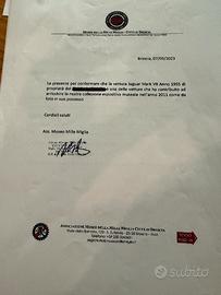La vettura fu esposta al museo delle mille miglia a Brescia nell'anno 2011 come si può verificare dal documento allegato nelle foto, con la possibilità d'iscrizione alla famosa competizione