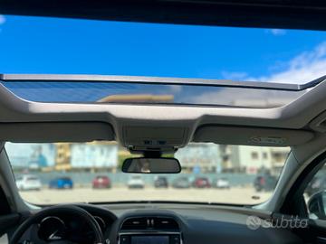 Interni curati, in pelle e tessuto chiaro, con tetto panoramico apribile, bracciolo posteriore, doppio clima e dettagli premium che esaltano il comfort di bordo.