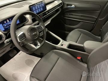 Chilometraggio: 0 Condizioni: km 0 Immatricolazione: 12/2025 Tipologia: Fuoristrada Carburante: Elettrica/Benzina Tipo di cambio: Automatico ABS, Adaptive Cruise Control, Airbag, Airbag laterali, Airbag Passeggero, Airbag testa, Autoradio, Autoradio digitale, Bluetooth, Bracciolo, Cerchi in lega, Chiusura centralizzata, Climatizzatore, Controllo trazione, Cruise Control, ESP, Fari LED, Fendinebbia, Frenata d'emergenza assistita, Immobilizzatore elettronico, Sensore di luce, Sensore di pioggia, Sensori di parcheggio posteriori, Servosterzo, Specchietti laterali elettrici, Telecamera per parcheggio assistito "Bonus Finanziamento" Prezzo Senza Finanziamento: € 23.990,00 Bonus Finanziamento e Rottamazione: € 1.000,00 Prezzo Auto con bonus finanziamento: € 22.990,00 Passaggio di proprietà, IPT, spese di rottamazione non inclusi Equipaggiamentodi serie 6 altoparlanti Apple Carplay / Android Auto wireless Uconnect Box con Uconnect Services Adaptive cruise control Bracciolo anteriore Camera posteriore a 180° con vista dall’alto tipo drone Cerchi in lega da 17" Climatizzatore automatico Fari abbaglianti automatici Fari anteriori full LED Fendinebbia a LED Frenata di emergenza per riconoscimento pedoni e ciclisti Hill descent control (sistema di controllo della velocità in discesa) Lane keep assist (funzione warning e lane keeping) Maniglie portiere in tinta carrozzeria Piano di carico posteriore reversibile e regolabile in altezza Quadro strumenti a colori TFT da 10.25" configurabile Radio Uconnect touchscreen da 10,25'' DAB Retrovisori elettrici riscaldabili Retrovisori esterni neri Retrovisori esterni regolabili elettricamente Rilevatore di stanchezza del conducente Rivestimenti interni Premium neri (Eco Vinile) Sedili anteriori regolabili manualmente (6 vie guidatore, 4 vie passeggero) Sedili posteriori frazionabili 60/40 reclinabili Selettore modalità guida Select-Terrain Sensore crepuscolare Sensore pioggia Sensori