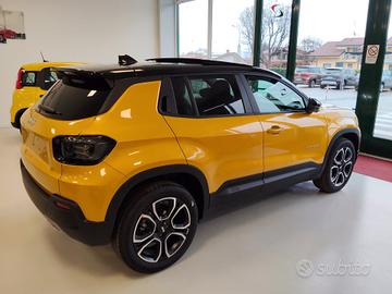 Jeep Avenger 1.2 100cv, allestimento Summit, km0, bicolore oro tetto nero, tettino apribile, climatizzatore automatico, cerchi in lega 18", sensori di parcheggio anteriori e posteriori, telecamera 360°, vetri privacy, fendinebbia, keyless, portellone elettrico, specchi richiudibili elettrici, cruise control, car play, fari full led.