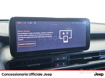 Adaptive Cruise Control, Apple Carplay / Android Auto wireless, Bracciolo anteriore, Calotte specchi nere lucide, Cerchi in lega da 17quot; con pneumatici 215/60 R17, Climatizzatore automatico, Fari riflettori full led, Frenata di emergenza per riconoscimento pedoni e ciclisti, Hill Descent Control, Maniglie porte in tinta carrozzeria, Piano di carico regolabile in altezza, Plancia grigia satinata, Portellone posteriore elettrico, Rilevatore di stanchezza del conducente, Sedile conducente regolabile manualmente a 6 vie, Sedile passeggero regolabile manualmente a 4 vie, Sedili in tessuto premium e vinile neri con dettagli grigi, Sedili posteriori ribaltabili 60/40, Selec-Terrain con 6 modalità di guida, Sensori Di Parcheggio Posteriori, Sensori pioggia e crepuscolare, Sistema audio a 6 altoparlanti, Sistema di mantenimento della carreggiata, Specchietti esterni riscaldabili e regolabili elettricamente, Uconnect Box con Uconnect Services