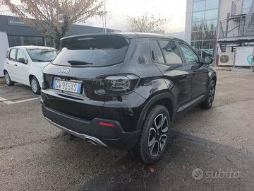 Abbaglianti automatici - Adaptive Cruise Control - Apple Carplay / Android Auto wireless - Blind Spot Monitoring - Bracciolo anteriore - Calotte specchi nere lucide - Camera posteriore a 180° con vista dall'alto tipo drone - Caricatore wireless per smartphone - Cavo per la ricarica pubblica Mode 3 - Cerchi in Lega da 18" bicolore con trattamento diamantato con pneumatici 215/55 R18 - Climatizzatore automatico - Cristalli laterali posteriori e lunotto oscurati - Fari Full LED anteriori e posteriori - Fendinebbia LED - Frenata di emergenza per riconoscimento pedoni e ciclisti - Guida autonoma di livello 2 con traffic jam assist - Hill Descent Control - Illuminazione d'ambiente interna con 8 colori configurabili - Maniglie porte in tinta carrozzeria - Pad cover - Piano di carico regolabile in altezza - Plancia silver - Quadro strumenti digitale da 10,25" a colori - Radio Uconnect touchscreen da 10,25" DAB - Rilevatore di stanchezza del conducente - Sedile conducente regolabile manualmente a 6 vie - Sedile passeggero regolabile manualmente a 4 vie - Sedili posteriori ribaltabili 60/40 - Selec-Terrain con 6 modalità di guida - Selleria in tessuto premium e vinile black / grey e plancia silver - Sensori di parcheggio a 360° (12 canali) - Sensori pioggia e crepuscolare - Sistema Keyless Start - Sistema audio a 6 altoparlanti - Sistema di mantenimento della carreggiata - Skid plate silver - Specchietti esterni regolabili elettricamente - Specchietti esterni riscaldabili e regolabili elettricamente - Specchietto retrovisore interno frameless elettrocromico - Tappetini - Uconnect Box con Uconnect Services - Volante in ecopelle