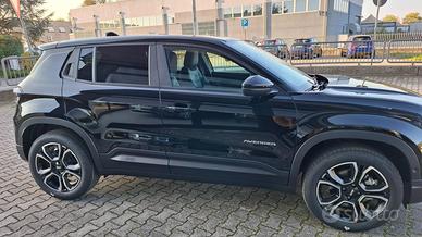 Climatizzatore automatico, Sedile conducente regolabile manualmente a 6 vie, Sedile passeggero regolabile manualmente a 4 vie, Sedili posteriori ribaltabili 60/40, Bracciolo anteriore, Tappetini, Volante in ecopelle, Pad cover, Piano di carico regolabile in altezza, Uconnect Box con Uconnect Services, Sistema Keyless Start, Plancia silver, Skid plate silver, Quadro strumenti digitale da 10,25" a colori, Illuminazione d'ambiente interna con 8 colori configurabili, Sistema audio a 6 altoparlanti, Radio Uconnect touchscreen da 10,25" DAB, Caricatore wireless per smartphone, Cerchi in Lega da 18" bicolore con trattamento diamantato con pneumatici 215/55 R18, Apple Carplay / Android Auto wireless, Cavo per la ricarica pubblica Mode 3, Maniglie porte in tinta carrozzeria, Calotte specchi nere lucide, Specchietti esterni ripiegabili elettricamente, Specchietti esterni riscaldabili e regolabili elettricamente, Fendinebbia LED, Abbaglianti automatici, Sensori pioggia e crepuscolare, Fari Full LED anteriori e posteriori, Selleria in tessuto premium e vinile black / grey e plancia silver, Specchietto retrovisore interno frameless elettrocromico, Frenata di emergenza per riconoscimento pedoni e ciclisti, Rilevatore di stanchezza del conducente, Hill Descent Control, Blind Spot Monitoring, Sistema di mantenimento della carreggiata, Adaptive Cruise Control, Sensori di parcheggio a 360° (12 canali), Camera posteriore a 180° con vista dall'alto tipo drone, Selec-Terrain con 6 modalità di guida, Guida autonoma di livello 2 con traffic jam assist, Cristalli laterali posteriori e lunotto oscurati,