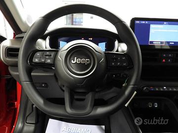 Apple car play/android auto, Sistema vivavoce bluetooth con comandi al volante, Uconnect touch display da 10.25'', Sistema di navigazione, Climatizzatore manuale, Sedili anteriori con regolazione manuale, Bracciolo del sedile anteriore con scomparto interno, Quadro strumenti digitale, Select terrain mode selector, Freno di stazionamento elettrico, Stop&start, Cruise control, Sensori di parcheggio posteriore, Specchietti esterni riscaldabili e regolabili elettricamente, con calotta esterna nero opaco, Lane departure warning plus, Frenata di emergenza con rilevamento pedoni e ciclisti, Cerchi in lega da 16" Standard, Sedili in tessuto nero.