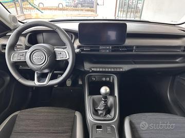 Climatizzatore Manuale, Sedile conducente regolabile manualmente a 6 vie, Sedile passeggero regolabile manualmente a 4 vie, Sedili posteriori ribaltabili 60/40, Bracciolo anteriore, Uconnect Box con Uconnect Services, Quadro strumenti digitale da 7,25" a colori, Sistema audio a 6 altoparlanti, Radio Uconnect touchscreen da 10,25" DAB, Cerchi in lega da 16" con pneumatici 215/65 R16, Apple Carplay / Android Auto wireless, Maniglie porte in tinta carrozzeria, Calotte specchi nere, Specchietti esterni riscaldabili e regolabili elettricamente, Sensori pioggia e crepuscolare, Fari riflettori full led, Plancia Nera, Sedili in tessuto neri, Cruise Control, Frenata di emergenza per riconoscimento pedoni e ciclisti, Rilevatore di stanchezza del conducente, Hill Descent Control, Sistema di mantenimento della carreggiata, Selec-Terrain con 6 modalità di guida,