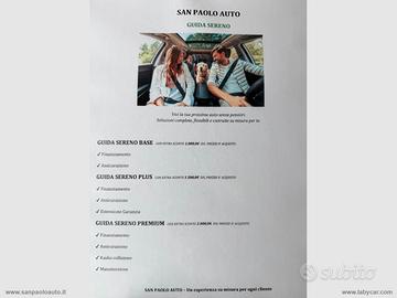 SAN PAOLO AUTO SRL LE MIGLIORI AUTO AL MIGLIOR PREZZO SUL MERCATO NON PERDERTI QUESTA OCCASIONE !! Tutte le nostre vetture sono Ufficiali Garantite e sottoposte a 100 punti di controllo qualità dai nostri partner qualificati Sempre Igienizzate e Tagliandate prima della consegna con minimo 12 MESI DI GARANZIA CONTRATTUALE Per qualsiasi informazione chiarimento , per fissare un appuntamento con uno dei nostri Partner commerciali O per una prova su strada puoi contattarci direttamente al Numero anche via WHATSAPP!! SCOPRI LA NOSTRA SOLUZIONE GUIDA SERENO Vivi l' esperienza d' acquisto della tua nuova auto senza pensieri Scegli la tua VETTURA !, al resto ci pensiamo noi ! PERCHE' SCEGLIERCI ? . AUTO CERTIFICATE CON CONTROLLO DI QUALITA' . FINANZIAMENTI PERSONALIZZABILI . MASSIMA TRASPARENZA E KILOMENTRI CERTIFICATI PER RIMANERE SEMPRE AGGIORNATO SULLE NOSTRE NOVITA SEGUICI SUI NOSTRI PROFILI SOCIAL INSTRAGRAM: @SANPAOLOAUTO FACEBOOK:@SANPAOLOAUTO O VISITA IL NOSTRO SITO WWW.SANPAOLOAUTO.IT