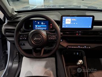 Crossover praticamente***NUOVO***, solamente Immatricolato a Km. Zero il 27Giugno 2025!!! Veicolo Nazionale (NO IMPORTAZIONE come la maggior parte delleJeep Avenger in commercio)!!! Veicolo in garanzia ufficiale della casa Jeep fino al 27 Giugno 2027 con possibilitàdi estenderla, con una aggiunta di prezzo, fino ad altri 3 anni (Fino al 27Giugno 2030)!!! ***PREZZO REALE (Escluso passaggio di proprietà), NON VINCOLATO a formule di finanziamento, rottamazione o pacchetti assicurativi obbligatori***!!! Crossover dotato della motorizzazione **1199 c.c. Turbo a Benzina (3 Cilindri) da 101CV EURO 6E con sistema Start&Stop**!!! Cambio: Manuale a 6 Marce Colore Esterno: Storm Pastello Principali dotazioni di serie che caratterizzano l'allestimento **Longitude**: - Alzacristalli elettricianteriori e posteriori; - Chiusure centralizzate con telecomando; - Keyless Start - Quadro strumenti digitale a colori da 7,25"; - Climatizzatore manuale; - ABS + EBD + ESP + ASR + Hill Start Assist + Hill Descent Control; - Freno di stazionamento elettrico; - Airbag lato guidatore + Airbag lato passeggero + Airbag laterali + Airbag a tendinaper la testa; - Volante multifunzione; - Uconnect Radio Touchscreen 10,25"; - Connettività Wireless per Apple CarPlay & Android Auto; - TBM: Uconnect Box & Uconnect Services; - Attacchi Isofix sul sedile anteriore del passeggero e sul sedile posteriore; - Sedile posteriore con schienale sdoppiabile (40/60); - Bracciolo centrale anteriore scorrevole con vano portaoggetti; - Drive Mode con Selec-Terrain; - Cruise Control Limitatore di velocità; - Forward Collision Warning; - Lane Departure Warning Plus; - Driver Attention Alert; - Traffic Sign Recognition; - Sensore pioggia + Sensore crepuscolare fari; - Proiettori anteriori con riflettori Full LED Luci diurne a tecnologia LED; - Retrovisori esterni regolabili e riscaldabili elettricamente; - Senso