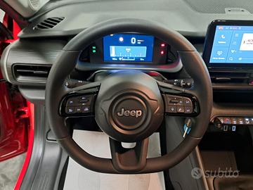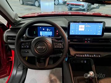 Crossover praticamente ***NUOVO***, solamente Immatricolato a Km. Zero il 28 Novembre 2024!!! Veicolo Nazionale (NO IMPORTAZIONE come la maggior parte delle Jeep Avenger in commercio)!!! Veicolo in garanzia ufficiale della casa Jeep fino al 28 Novembre 2026 con possibilità di estenderla, con una aggiunta di prezzo, fino ad altri 3 anni (Fino al 28 Novembre 2029)!!! ***PREZZO REALE (Escluso passaggio di proprietà), NON VINCOLATO a formule di finanziamento, rottamazione o pacchetti assicurativi obbligatori***!!! Crossover dotato della motorizzazione **1199 c.c. Turbo a Benzina (3 Cilindri) da 101CV EURO 6E con sistema Start&Stop**!!! Cambio: Manuale a 6 Marce Colore Esterno: Ruby Pastello Principali dotazioni di serie che caratterizzano l'allestimento **Longitude**: - Alzacristalli elettrici anteriori e posteriori; - Chiusure centralizzate con telecomando; - Quadro strumenti digitale a colori da 7,25"; - Climatizzatore manuale; - ABS EBD ESP ASR Hill Start Assist Hill Descent Control; - Freno di stazionamento elettrico; - Airbag lato guidatore Airbag lato passeggero Airbag laterali Airbag a tendina per la testa; - Volante multifunzione; - Uconnect Radio Touchscreen 10,25"; - Connettività Wireless per Apple CarPlay & Android Auto; - TBM: Uconnect Box & Uconnect Services; - Attacchi Isofix sul sedile anteriore del passeggero e sul sedile posteriore; - Sedile posteriore con schienale sdoppiabile (40/60); - Bracciolo centrale anteriore scorrevole con vano portaoggetti; - Drive Mode con Selec-Terrain; - Cruise Control Limitatore di velocità; - Forward Collision Warning; - Lane Departure Warning Plus; - Driver Attention Alert; - Traffic Sign Recognition; - Sensore pioggia Sensore crepuscolare fari; - Proiettori anteriori con riflettori Full LED Luci diurne a tecnologia LED; - Retrovisori es