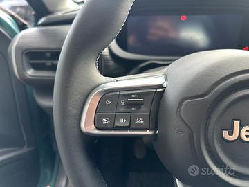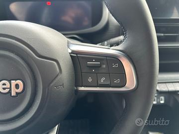 Optional: - Sedili in tessuto premium e vinile black / grey & plancia mic black - Cerchi in lega da 17" con pneumatici 215/60 R17 - Hill Descent Control - Plancia Nera - Maniglie porte in tinta carrozzeria - Bracciolo anteriore - Climatizzatore automatico - Sedili posteriori ribaltabili 60/40 - Sensori pioggia e crepuscolare - Specchietti esterni riscaldabili e regolabili elettricamente - Sistema di mantenimento della carreggiata - Sistema audio a 6 altoparlanti - Frenata di emergenza per riconoscimento pedoni e ciclisti - Rilevatore di stanchezza del conducente - Radio Uconnect touchscreen da 10,25" DAB - Quadro strumenti digitale da 10,25" a colori - Apple Carplay / Android Auto wireless - Selec-Terrain con 6 modalità di guida - Fari riflettori full led - Sedile conducente regolabile manualmente a 6 vie - Sedile passeggero regolabile manualmente a 4 vie - Calotte specchi nere lucide