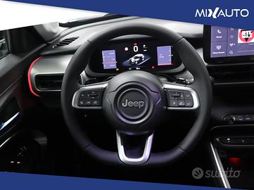 Climatizzatore automatico, Sedili posteriori ribaltabili 60/40, Bracciolo anteriore, Tappetini, Volante in ecopelle, Pad cover, Piano di carico regolabile in altezza, Uconnect Box con Uconnect Services, Sistema Keyless Start, Plancia silver, Skid plate silver, Quadro strumenti digitale da 10,25" a colori, Illuminazione d'ambiente interna con 8 colori configurabili, Sistema audio a 6 altoparlanti, Radio Uconnect touchscreen da 10,25" DAB, Caricatore wireless per smartphone, Cerchi in Lega da 18" bicolore con trattamento diamantato con pneumatici 215/55 R18, Apple Carplay / Android Auto wireless, Maniglie porte in tinta carrozzeria, Calotte specchi nere lucide, Specchietti esterni ripiegabili elettricamente, Specchietti esterni riscaldabili e regolabili elettricamente, Fendinebbia LED, Abbaglianti automatici, Sensori pioggia e crepuscolare, Fari Full LED anteriori e posteriori, Specchietto retrovisore interno frameless elettrocromico, Frenata di emergenza per riconoscimento pedoni e ciclisti, Rilevatore di stanchezza del conducente, Hill Descent Control, Blind Spot Monitoring, Sistema di mantenimento della carreggiata, Adaptive Cruise Control, Sensori di parcheggio a 360° (12 canali), Camera posteriore a 180° con vista dall'alto tipo drone, Selec-Terrain con 6 modalità di guida, Guida autonoma di livello 2 con traffic jam assist, Cristalli laterali posteriori e lunotto oscurati, Pelle black con dettagli grey e plancia silver, ABS, Airbag, Airbag laterali, Airbag posteriore, Airbag testa, ESP, Chiamata automatica per emergenze, Chiusura centralizzata senza chiave, Chiusura centralizzata telecomandata, Controllo elettronico della corsia, Freno di stazionamento elettrico, Monitoraggio pressione pneumatici, Riconoscimento dei segnali stradali, Sistema di chiamata d'emergenza, Alzacristalli elettrici, Boardcomputer, Chiusura centralizzata, Interni in pelle, Isofix, Leve al volante, Limitatore di velocità,