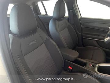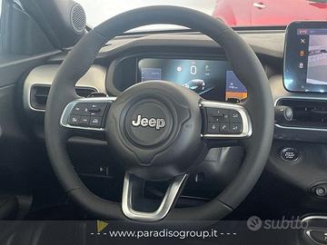 DEK:[10237190] Perché comprarla? Suv compatto con un motore turbo benzina Mild Hybrid da 1.2 litri e 110 CV. Agile in città grazie alle dimensioni compatte, con uno sterzo preciso e leggero. Allestimento "Altitude" che si distingue per un tocco di eleganza offrendo un buon equilibrio tra tecnologia, comfort e sicurezza. Volante multifunzione, plancia digitale e display touchscreen, ed illuminazione ambientale configurabile. Bagagliaio con una ottima capacità, con sedili posteriori che possono essere abbattuti per aumentare lo spazio. La dotazione tecnica e gli accessori indicati nella presente scheda potrebbero non coincidere con l'effettivo equipaggiamento del veicolo, a causa della non uniformità dei dati pubblicati nei diversi portali. Ci scusiamo per l'inconveniente e vi invitiamo a verificare le caratteristiche dello specifico veicolo. Paradiso s.r.l. declina ogni responsabilità per eventuali involontarie incongruenze, che non rappresentano in alcun modo un impegno contrattuale. ParadisoGroup EQUIPAGGIAMENTI OPTIONAL : Ruota di scorta da 16'' by mopar - storno - Ruotino di scorta - Snow - pastello EQUIPAGGIAMENTI DI SERIE : E6EBIS COMPLIANT - FINISHING GLOSSY BLACK - Libretto di garanzia italia - Libretto istruzioni in italiano - Logo qv line - MODEL YEAR 2026 - Servizi Connessi JEEP 10 annidi Connect ONE & 6 mesi di Connect PLUS Scopri di più su: www.paradisogroup.it