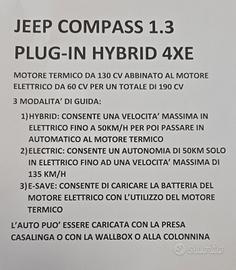 Jeep Compass con soli 50mila km certificati e tagliandati. AUTO PARI AL NUOVO, anno 2020, 1.3 cc 131cv alimentazione HYBRID PLUG-IN (consente una velocità massima in elettrico fino a 50km/h per poi passare in automatico al motore termico). Garanzia casco e primo tagliando in omaggio. Qualsiasi prova con il vostro meccanico di fiducia.