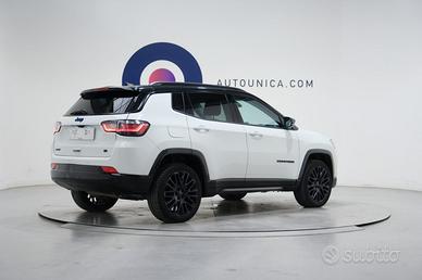 JEEP Compass 1.3 Turbo T4 240 CV PHEV AT6 4xe S del 2023 è un SUV plug-in hybrid ad alte prestazioni, pensato per chi vuole potenza, comfort e trazione integrale senza rinunciare all’efficienza. Il sistema ibrido ricaricabile da 240 CV, abbinato al cambio automatico AT6 e alla trazione 4x4 elettrica, garantisce accelerazioni decise, grande stabilità su ogni fondo e la possibilità di muoversi in modalità 100% elettrica nei percorsi urbani. La sicurezza è di livello superiore, con Adaptive Cruise Control, frenata d’emergenza assistita, mantenimento di corsia, riconoscimento dei segnali stradali, limitatore di velocità, monitoraggio pressione pneumatici, ESP, ABS e controllo di trazione, oltre a airbag frontali, laterali e a tendina