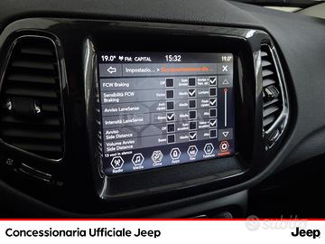 2 Airbag a tendina, 2 AIRBAG FRONTALI, 2 Airbag laterali, 6 Altoparlanti, Barre al tetto con inserto cromato, Cavo di ricarica domestica mode 2, Clima automatico bi-zona, Controllo Di Trazione, Cornice fendinebbia cromata, Cruise Control, Electronic Roll Mitigation, Fendinebbia con funzione cornering, Freno a mano elettrico, Full Speed Forward Collision Warning, Function Pack, Gruppo ottico posteriore a Led Signature, Inserti cromati nel paraurti anteriore, Lane Keep Assist (funzione Warning e Lane Keeping), Maniglie esterne in tinta carrozzeria, Modanatura cromata profilo cristalli, Monitoraggio pressione pneumatici (TPMS), Piano di carico regolabile in altezza, Poggiatesta anteriori attivi, Quadro strumenti a colori da 7'' TFT configurabile, Radio DAB, RETRONEBBIA, Sedili in tessuto ed ecopelle, Sedili posteriori reclinabili 60/40, SENSORI DI PARCHEGGIO POSTERIORI, Sistema di ausilio alla partenza in salita (Hill Start Assist), Specchietti retrovisori esterni in tinta carrozzeria, Specchietto retrovisore interno elettrocromatico, Style Pack 18'', Supporto lombare elettrico, Tappetini anteriori e posteriori, TBM (Uconnect Box amp; Uconnect Services), TERMINALE DI SCARICO CROMATO, Visibility Pack, Volante in pelle