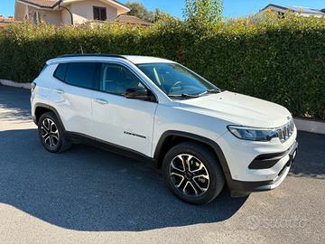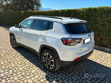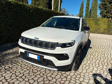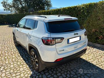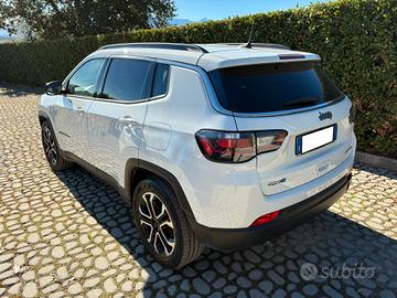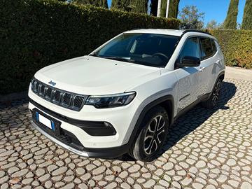 Jeep Compass 1.3 T4 PHEV 190Cv Limited 4xe-Low-Lock (4x4) HybridPlug-in Automatico/Seq 96Kw (motore termico) 44Kw (motore elettrico), immatricolazione 10.05.2022, Euro 6D-Isc-Fcm, coloreAlpine White con protettori intorno parte bassa carrozzeria / barre tetto / modanaturevetri porte / calotte specchi nero opaco,vetri oscurati, fanali e luci di posizione a Led, fendinebbia, cerchi in lega, uso proprio 5posti interno pelle nera / tela grigia con cuciture bianche, sedile conducentecon comando posizione lombare, selettoreguida Auto / Sport / Snow / San Mud / Rock – selettore 4Wd Low / 4Wd Lock, selettoreHybrid – Electric – E-Save, bracciolo centrale anteriore / posteriore, volantein pelle, freno a mano comando elettrico, Traffic Sign Recognition, anti crash (radar)con frenata d’emergenza, selettore parking assist (parcheggio automatico), chiusuracentralizzata chiavi telecomando con transponder, control cruise comandivolante con selettore ACC, impianto Multimedia schermo touchscreem Radio / Media/ Confort / Telefono / Nav (TomTom) / Veicolo / Apps comandi volante, AppleCarPlay, bluetooth comandi volante e vocali, ESP, ABS, airbag, sidebag, 4vetried specchi richiudibili, Lane Assyst, sensori di parcheggio anteriori / posterioricon visuale 360° e telecamera per parcheggio assistito, climatizzatoreautomatico bizona digitale, sedili posteriori sdoppiabili con appoggiatesta e copri bagagliaio,sportello posteriore elettrico, provvista di gomma di scorta, 80.668Km,tagliandato con chilometri certificati.
