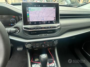 Safety Pack Altitude-Overland, vernice pastello Black, 6 airbag (frontali, laterali e a tendina), abbaglianti automatici, Adaptive Cruise Control, Android Auto/Apple CarPlay wireless, calotte specchi Gloss Black, cambio automatico D0 a 7 marce, cavo di ricarica domestica mode 3, cerchi in lega da 18" con pneumatici 235/50 R18, clima automatico bi-zona, fari a LED reflectors con DRL integrato, Full Speed Forward Collision Warning, Lane Support System, quadro strumenti a colori da 10,25" TFT configurabile, retrocamera, rilevatore di stanchezza, cornice cristalli cromata, frenata d'emergenza con riconoscimento pedoni e ciclisti, Intelligent Speed Assist, Passive Entry con Keyless-go, sedile guidatore con regolazione manuale a 6 vie, sedile guida con regolazione lombare elettrica a 2 vie, specchietti richiudibili elettricamente con chiusura automatica, TBM (Uconnect Box & Uconnect Services), tappetini, tessuto e Tecno Vinyl nero, Traffic Sign Recognition, Climatizzatore automatico bizona, sistema vivavoce Bluetooth con comandi al volante, quadro strumenti digitale TFT da 10,25" a colori, impianto audio con 6 altoparlanti, radio Uconnect da 10,1" con servizi connessi, specchietti esterni ripiegabili elettricamente e con indicatori di direzione integrati, specchietto retrovisore interno elettrocromatico, accesso e avviamento keyless-go, retrocamera Park View, tergicristalli con sensore pioggia, fari fendinebbia a LED con DRL integrati, abbaglianti automatici (Smartbeam), fasce laterali e maniglie in tinta carrozzeria, calotte specchietti Gloss Black, tetto solid black, sedile conducente regolabile elettricamente (2 vie lombare) e manualmente (6 vie), sedile passeggero regolabile manualmente (6 vie), alette parasole con specchietti illuminati, pomello cambio in pelle traforata, tappetini anteriori/posteriori, portaoggetti e maniglie interne supplementari, frenata automatica d'emergenza, controllo elettronico di stabilità (ESC), Rain Brake Support, Hill Start Assist, Fu