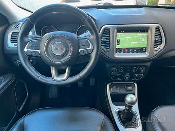 JEEP COMPASS 1.6 MJ 120CV allestimento LONGITUDE, con cambio manuale 6rapporti, schermo grande touch screen con navigatore cartografico, Bluetooth, radio cd mp3 con ingresso USB e AUX, telecamera di retromarcia, climatizzatore elettronico bi-zona, interni sportivi in pelle parziale di colore nero, bracciolo centrale, volante sportivo in pelle multifunzione, cruise control, sensori parcheggio posteriori, specchi retrovisori regolabili elettronicamente, cerchi in lega da 17" con gomme invernali al 80%, sensore luce e pioggia, LANE ASSIST (sensore carreggiata), FRONT ASSIST (sensore frenata).
