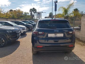 JEEP COMPASS 1.6 mjt 130cv LIMITED, con CHILOMETRAGGIO CERTIFICATO JEEP ( KM 89000 !!! ). AUTO SEMPRE RIGOROSAMENTE TAGLIANDATA. CRONOLOGIA TAGLIANDI presente e DOCUMENTATA.--------------------------------------------------------------- INFO ------------------------------------------------------ Auto come nuova, dotata oltretutto di INTERNI in TESSUTO PREGIATO ( PELLE parziale ), NAVIGATORE SATELLITARE CARTOGRAFICO, CLIMATIZZATORE AUTOMATICO BIZONA, VOLANTE in PELLE, COMANDI al VOLANTE, CRUISE CONTROL ADATTIVO, BLUETOOTH, COMPUTER di BORDO, VETRI ELETTRICI ANTERIORI e POSTERIORI, RETROVISORI ESTERNI RISCALDABILI, REGOLABILI E RICHIUDIBILI ELETTRICAMENTE, SENSORE PIOGGIA, RADAR AVVISO DISTANZA, CROMATURE INTERNE ed ESTERNE, CERCHI in LEGA da 19', SENSORI di PARCHEGGIO ANTERIORI, POSTERIORI e LATERALI, RETROCAMERA quadrangolare, LED, presa USB, VETRI OSCURATI, BARRE al TETTO LONGITUDINALI, CONNETTIVITA' DATI e tanto altro ancora. Unico proprietario. In dotazione PRIMA CHIAVE con TELECOMANDO e SECONDA CHIAVE con telecomando. Vera occasione!!! ------------------------------------------------------------------------------- Importo finanziabile anche parzialmente. -----------------------------------------------GARANZIA 1 ANNO, estendibile ----------------------------------------------------------------------------------------------------------------------------Tutte le nostre vetture sono dotate di libretti di manutenzione e/o rapporto peritale da parte di Dekra ( primaria società peritale a livello mondiale ) attestante chilometraggio ed eventuali danni presenti sulla vettura.Pertanto , nel confrontare il prezzo delle nostre auto con quelle della concorrenza , assicuratevi sempre che queste ultime abbiano pari caratteristiche.Ricorda che per ogni 3000 chilometri percorsi e non dichiarati il valore del modello va diminuito dell' 1,5%.