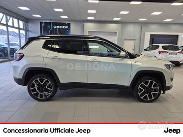 ABS (Sistema di frenata antibloccaggio), Accendisigari, Alzacristalli elettrici anteriori e posteriori, Antifurto, Apple car Play e Android Auto, Barre portatutto con inserto cromato, Beats Audio System a 9 altoparlanti, Cerchi in lega da 18'', Chiave con radiocomando a distanza, Cintura di sicurezza a triplo ancoraggio, Climatizzatore automatico a 2 zone, Comandi al volante, Controllo di trazione (TCS), Controllo elettronico della stabilita (ESP), Cornice fendinebbia cromata, CRISTALLI POSTERIORI E LUNOTTO POSTERIORE OSCURATI, Cruise Control, Electronic Roll Mitigation, FARI FENDINEBBIA CON FUNZIONE CORNERING, Freno di stazionamento elettrico, Full Speed Forward Collision Warning, Gruppo ottico anteriore con fari alogeni e LED signature, Gruppo ottico posteriore con LED signature, Illuminazione alette parasole, Immobilizer, Impianto audio con 6 speakers, Inserti cromati nel paraurti anteriore, Lane Keep Assist (funzione Warning e Lane Keeping), Luci diurne, Maniglie esterne in tinta carrozzeria, Modanatura cromata profilo cristalli anteriore e posteriore (DLO), Model Year, Navigatore, Poggiatesta anteriori attivi, Pomello del cambio rivestito in pelle (solo su A/T), Posacenere removibile, Presa ausiliaria da 12V, Quadro strumenti a colori TFT da 7'', Radio DAB, RETRONEBBIA, Rifornimento carburante senza tappo (capless), Sedile del guidatore regolabile in altezza, Sedile passeggero anteriore abbattibile, Sedili posteriori reclinabili 40/20/40, Sedili rivestiti in tessuto e pelle, Sensore crepuscolare, Sensore pioggia, SENSORI DI PARCHEGGIO POSTERIORI, Sistema di ausilio alla partenza in salita (Hill Start Assist), Sistema di gestione della trazione Selec-Terrain (solo 4WD), Sistema di trazione integrale Jeep Active Drive (solo 4WD), Sistema Uconnect con display touch 8.4'''', Smart Key, Specchietti retrovisori con regolazione elettrica,
