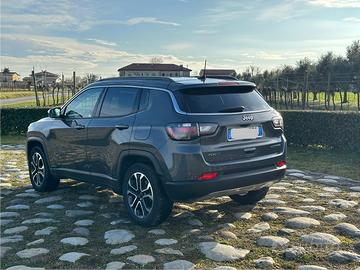 Jeep Compass 4XE 1.3 PHEV 190CV anno 2022 con 65.000km modello Limited adatto anche per neopatentati. Accessori cambio automatico navigatore faro allo xeno led sensori di parcheggio anteriori posteriori retro camera vetri oscurati cerchi in lega comandi al volante cruiser control park sistem clima automatico hold 4WD LOW/LOCK 4 modalità di guida active lane interno in pelle parziale stoffa e moltissimi altri accessori. Tagliando è pastiglie appena eseguiti. Unico proprietario. Prezzo 17.300€ euro trattabile per più informazioni contattare in privato.