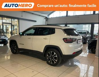 Chilometraggio: 86746 Condizioni: usato Immatricolazione: 09/2021 Tipologia: Fuoristrada Carburante: Diesel Tipo di cambio: Manuale ABS, Airbag, Airbag laterali, Airbag Passeggero, Airbag testa, Alzacristalli elettrici, Autoradio, Bluetooth, Boardcomputer, Bracciolo, Cerchi in lega, Chiusura centralizzata senza chiave, Climatizzatore automatico, 2 zone, Controllo trazione, Cruise Control, ESP, Fari LED, Fendinebbia, Freno di stazionamento elettrico, Immobilizzatore elettronico, Isofix, Luci diurne LED, Riconoscimento dei segnali stradali, Schermo multifunzione interamente digitale, Sedile posteriore sdoppiato, Sensore di luce, Sensori di parcheggio anteriori, Sensori di parcheggio posteriori, Servosterzo, Sistema di parcheggio automatico, Specchietti laterali elettrici, Start/Stop Automatico, Telecamera per parcheggio assistito, Vetri oscurati, Volante in pelle, Volante multifunzione PAGAMENTO ALLA CONSEGNA, RESO GRATUITO E 1 ANNO DI GARANZIA: SOLO SU AUTOHERO! _________________________________________ SEMPRE INCLUSO: - Pagamento alla consegna, prima vedi poi paghi - Reso gratuito, avrai 21 giorni e 500 km per cambiare idea - Finanziamento flessibile**, personalizzabile senza vincoli - Standard di qualità, veicoli ricondizionati e sanificati - Semplicità nell'acquisto, gestiamo noi tutte le pratiche - Acquisto sicuro, più di 1000 feedback positivi su Trustpilot - Garanzia 12 mesi inclusa, estendibile fino a 36 mesi _________________________________________ SALIAMO A BORDO! Tra le nostre Jeep Compass, questa si presenta nell allestimento Limited che coi suoi numerosi optional migliorerà la tua esperienza di guida, accompagnandoti a destinazione in tutta serenità. Immatricolata a settembre 2021, si presenta in perfette condizioni. L alimentazione Diesel è ancora la soluzione migliore per gli spostamenti più lunghi e per garantire maggiore vita al tuo motore. Infine, la vita a bordo sarà più facile grazie a Chiusura centralizzata, e . Che asp