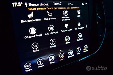 esterni,sedili posteriori scorrevoli e reclinabili60/40,quadro strumenti 7" TFT,sistema multimediale Uconnect con Touch Screen da 8,4'',navigatore,radio DAB e Uconnect LIVE,Apple CarPlay e Android Auto,sistema di trazione Selec-Terrain,Adaptive Cruise Control con funzione Stop&Go,avviso di collisione frontale (Forward Collision WarningPlus),sistema di avviso di uscita dalla corsia (Lane Departure WarningPlus),specchietto interno antiabbagliante automatico,sensorepioggia,specchietti retrovisori regolabili e richiudibili elettricamente,Keyless Enter-N-Go (apertura/chiusura porte senza chiave),accensioneautomatica degli anabbaglianti con sensore crepuscolare,tergicristallianteriori con sensore pioggia,specchietti esterni ripiegabili elettronicamente,cambio automatico a 8 rapporti con comandi al volante,fari bi-xeno HID con luci diurne a