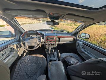 vendo non svendo jeep Grand Cherokee WG 2.7 crd 228000km motore e cambio ok da rivedere interni con sedili anteriori strappati e carrozzeria con graffi e trasparente saltato sempre tagliandata iniettori già revisionati dischi e pasticche anteriori e posteriori nuovi gommata al 80% allestimento overland con tettuccio apribile interni in pelle e sedili riscaldati,caricatore CD originale impianto infinity Gold originale con autoradio alpine ,da sostituire cavo freno a mano.vettura ventennale non iscritta ASI ancora.