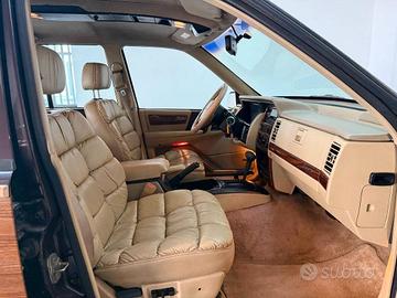 L'allestimento prevede anche cerchi in lega "Fiocco di Neve" specifici, sedili elettrici in pelle beige, finiture simil radica su consolle e pannelli porta, luci e tergi automatici, climatizzatore automatico, cruise control e praticamente tutta la lista optional allora disponibile su catalogo Jeep.