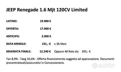 • VersioneRenegade 1.6 Mjt 120 CV Limited