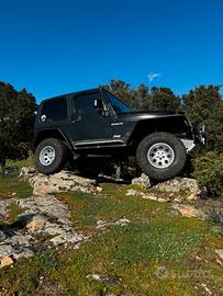Jeep wrangler ti 2500 paraurti uso gravoso verricello assetto fox cerchi mickey thompson gommati bf mud e cerchi in acciaio gommati stradali parafanghi in acciaio capottina in tela bikini tutte le modifiche sono omologate a libretto regolarmente. Disponibile qualsiasi prova