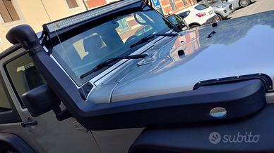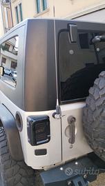 A livello di esterni segnaliamo: Paraurti anteriore Rugged Ridge omologato, Paraurti posteriore Rugged Ridge omologato, Verricello Warm 9000 omologato (a libretto omologato anche verricello posteriore), Cancello posteriore rinforzato Rugged Ridge (fino a 37"), Barra led con supporti, Calandra anteriore, Snorkel 4x4 omologato, Sottoporta, Parafanghi maggiorati Xenon 4x4, Gomma di scorta 35".