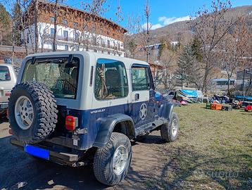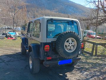 Jeep Wrangler Hard Top 4.0 anno 1996. Auto usata da lavoro, che presenta usura moderata, ma usata sempre bene e tagliandata. Primavera '25 effettuato cambio frizione e tagliando trasmissione, primavera '24 rigenerazione balestre e cambio integrale dischi e tamburi freni. Vendo con 9 cerchi, 4 metallici e 5 in lega. Gomme termiche 40% gomme tassellate estive 50%.
