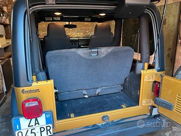Jeep Rubicon 4.0 a benzina, anno 2003, 166.917 km. Colore oro. Buone condizioni.