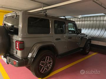 Jeep Wrangler Sahara Unlimited 4xe (PHEV).Circa 38.000km.Comprata nuova ad Agosto 2022 da concessionario Jeep. Tagliandata da concessionari Jeep.Interni in pelle, Hard Top. Accessoriata al meglio.Tenuta sempre in un garage privato. Adesivo USA sul cofano. Barre portapacchi incluse nel prezzo. 272cv benzina + 100cv di elettrico. Autonomia elettrico circa 70km.Volante e sedili riscaldati.