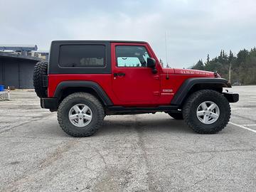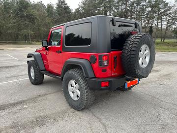 Modifiche: assetto completo +5 cm. (2” pollici) marca Old Man EMU di ARB, pneumatici maggiorati a libretto: 315/75R16 (35” pollici), inoltre disponibili anche 270/70R18 (33” pollici) e 255/85R16 (33” pollici), modulo ODB per la calibrazione del tachimetro (in base al diametro dei pneumatici) marca AEV Procal, cover differenziali rinforzati anteriore e posteriore marca Teraflex, cerniere rinforzate del portellone baule marca Rock’s, adattatore in acciaio supporto ruota di scorta, paraurti anteriore modello USA, serratura cofano Mopar (si usa la stessa chiave per accendere il motore), griglie di protezione fanali posteriori, sportellino tappo carburante originale Jeep Mopar, antenna in fibra CB Firestick e relativa predisposizione in abitacolo, borsone originale Jeep per riporre i due pannelli anteriori dell’hard top, Hood Cover Jeep originale per cofano motore.