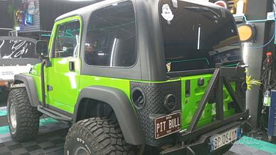 Wrangler tj Rubicon 4.0 hard top Meccanica Ponti Dana 44 anteriore e posteriore Blocchi originali anteriore e posteriore Coppie coniche 4:88 Cambio automatico Alberi rinforzati anteriore e posteriore più slip yoke eliminator 8 bracci regolabili su Jonny Joint Panhard regolabile anteriore e posteriore rinforzate Anti-rock anteriore Semiasse con para polvere Cover rinforzate ponti Pancia piatta Assetto Rancho 4 pollici e ammortizzatori bilstein Body lift 1.5 pollici Paraurti anteriore short e posteriore con cancello rudge Ridge Verricello warm 9500 Ganci dimensionati Kit fari frecce fumé e stop full led A-bar anteriore con fari supplementari Parafanghini laterali short Cerchi Mikey Thompson 10 pollici su gomme 35/12.50/15 cofano anniversario tipo JL Aspirazione e scarico e corpo farfallato maggiorato Interni nuovi originali Volante con Cruise control Specchietto retrovisore con bussola digitale originale Climatizzatore auto Interamente wrapping con pellicola wasabi green special Protezione anteriore e posteriore angolare in mandorlato Snorkel Pedane sport Cage rinforzate TUTTO REGOLARMENTE OMOLOGATO A LIBRETTO Macchina di nicchia in quanto una Rubicon e nn il classico TJ..... Per i puristi dispongo di tutti i pezzi originali....compreso i suoi cerchi da 16 Rubicon introvabili prezzo non trattabile